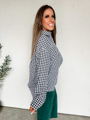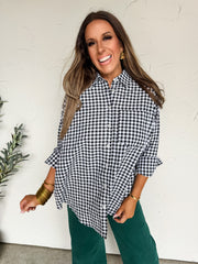 Suddenly Fine Black Oversized Gingham Button Down Shirt