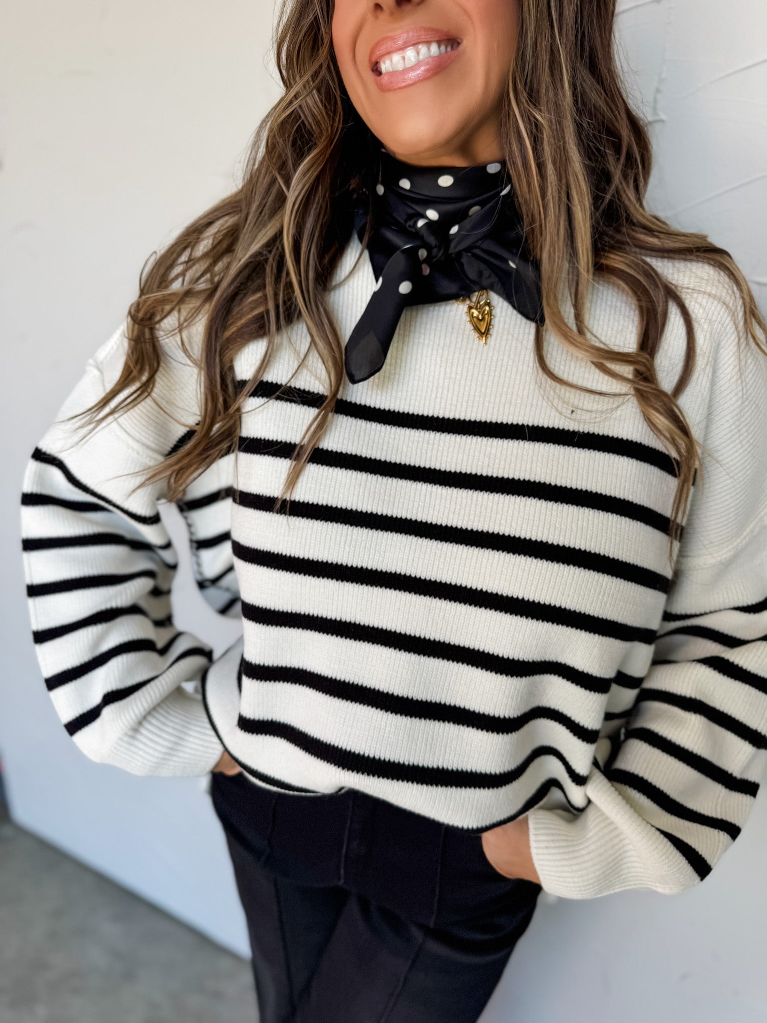 Taking My Time Exposed Seam Stripe Sweater- Ivory/Black