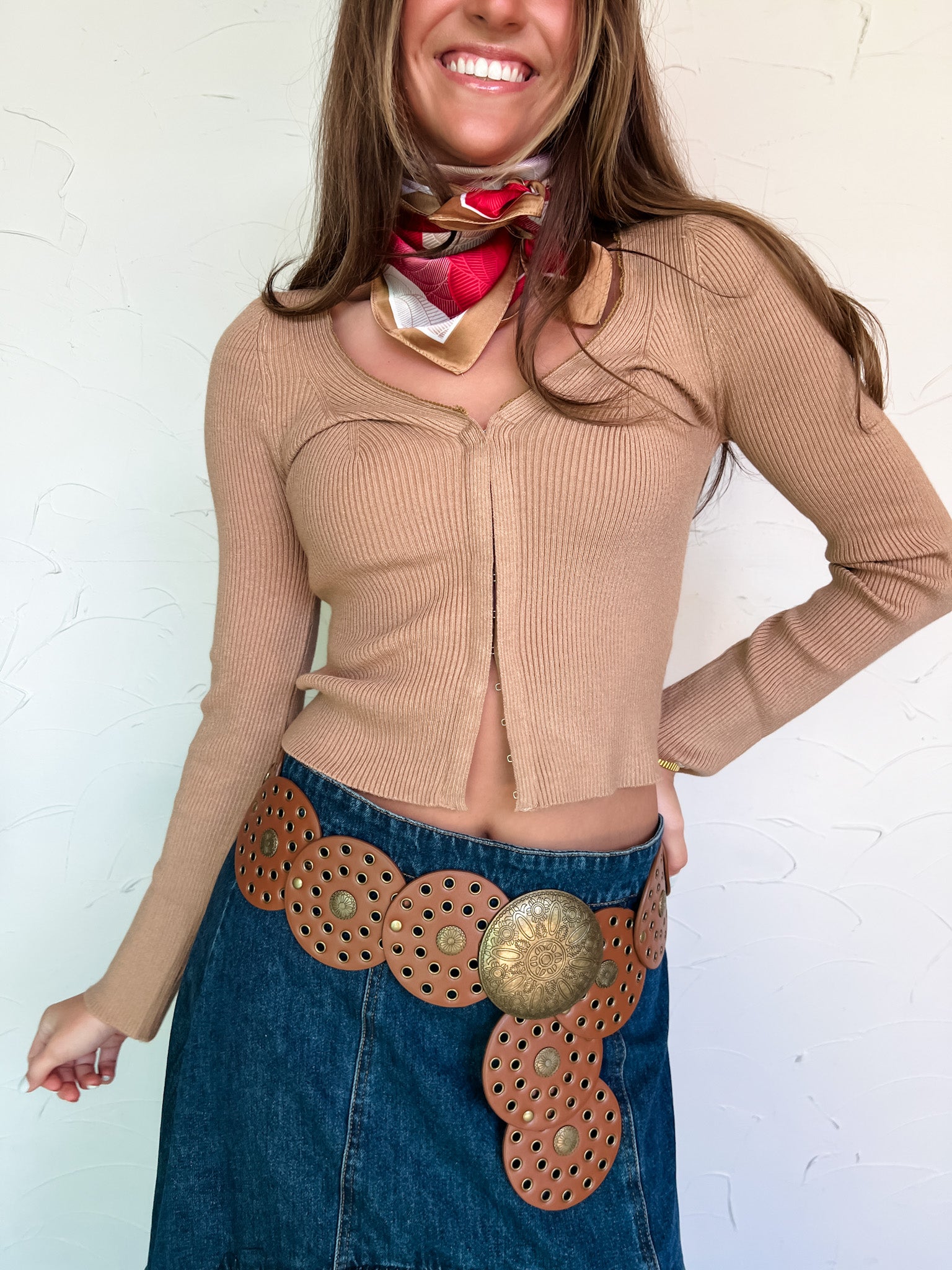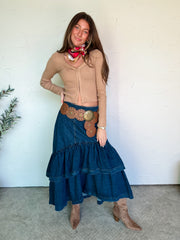 Styled With: Our That's So You Hi-Lo Midi Skirt & Charlee Red Monochrome Flower Scarf & Ivy Western Boot-Brown