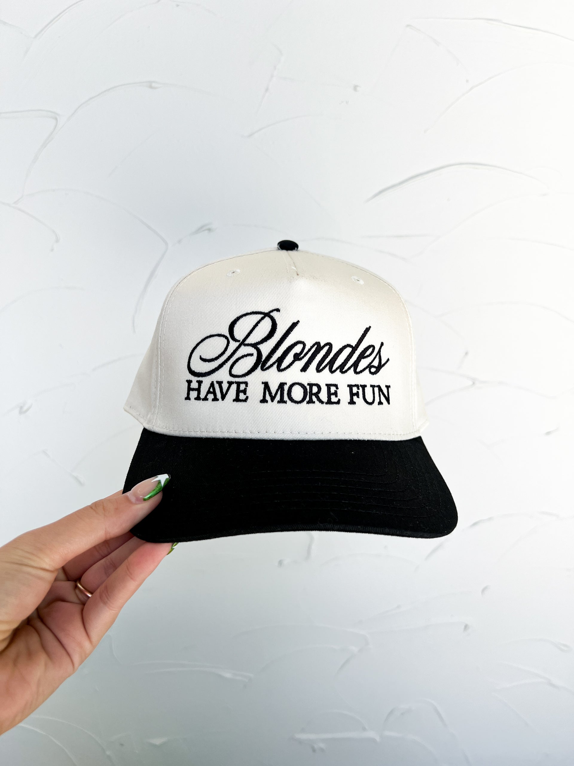 Stay cool and stylish with our Blondes Have More Fun Cap in black! This hat is perfect for any sunny day, providing both shade and a fun statement. Made with high-quality materials, it's comfortable and durable for all-day wear. Upgrade your accessory game and show off your blonde pride!