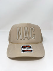 This NAC Embroidered Puff Hat in Khaki features a professional and stylish tone on tone embroidered design.