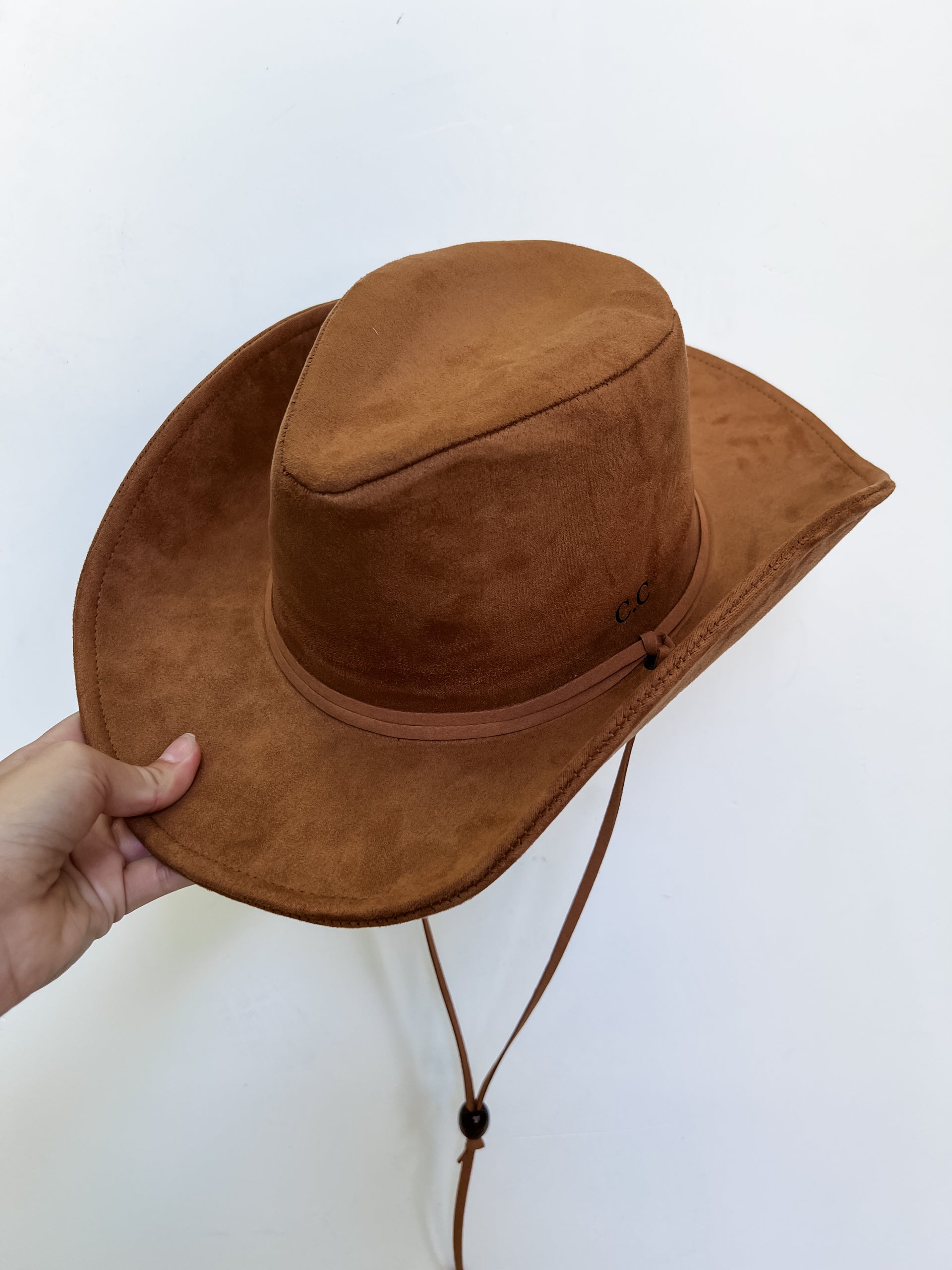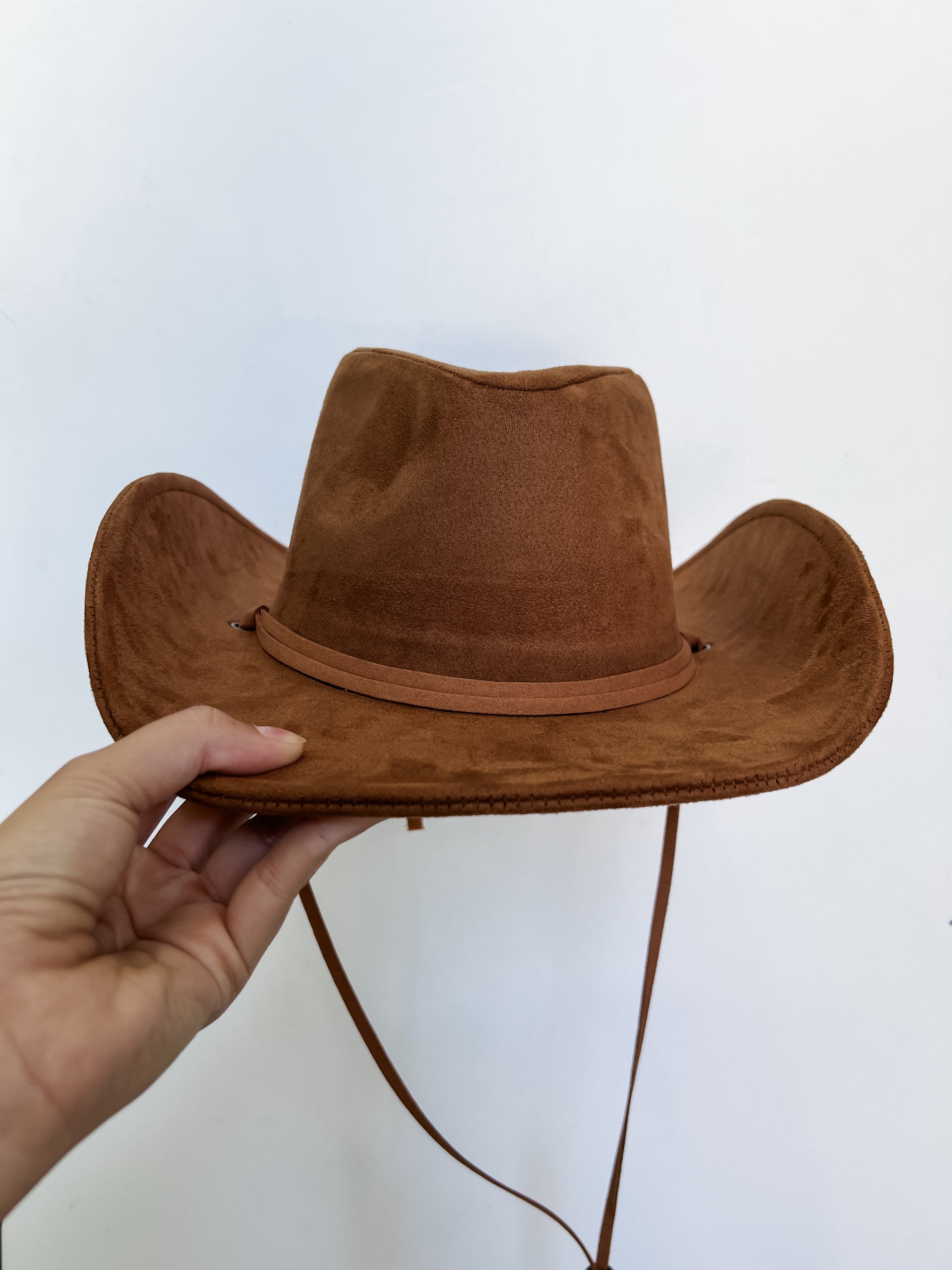 Complete your western look with our She's All Country Suede Cowboy Hat in a stunning camel color. Perfect for any cowgirl with an adjustable strap for a comfortable fit. Elevate your style and protect yourself from the sun with this stylish accessory.