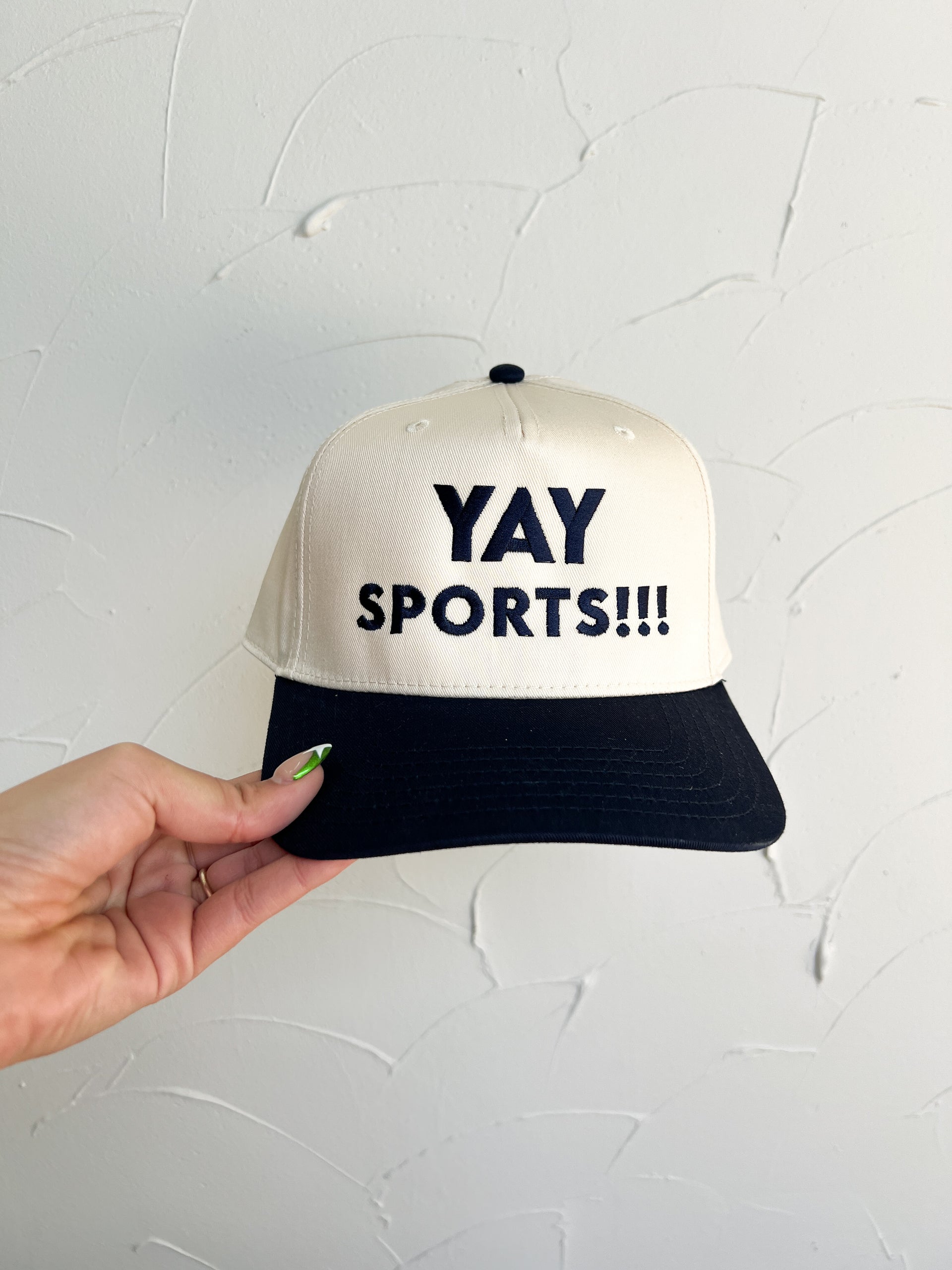Introducing the Yay Sports Cap - the perfect addition to any sporty outfit. This hat features a classic trucker style, providing both style and functionality. Keep your head cool and protected from the sun while showing off your love for sports. Get yours today and bring a touch of sportiness to your wardrobe!