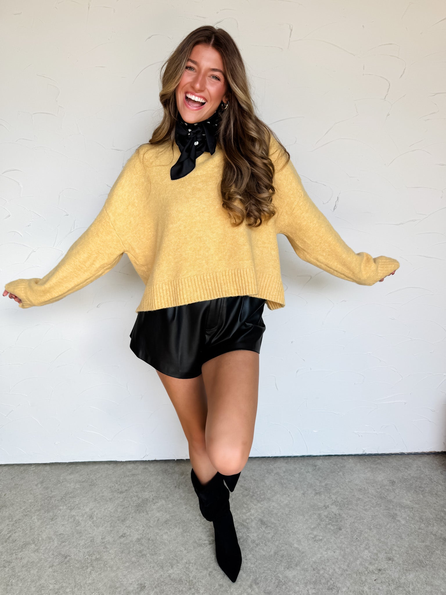 Styled With: Our Never Too Late Flared Leather Shorts & Pisa Heeled Boot- Black