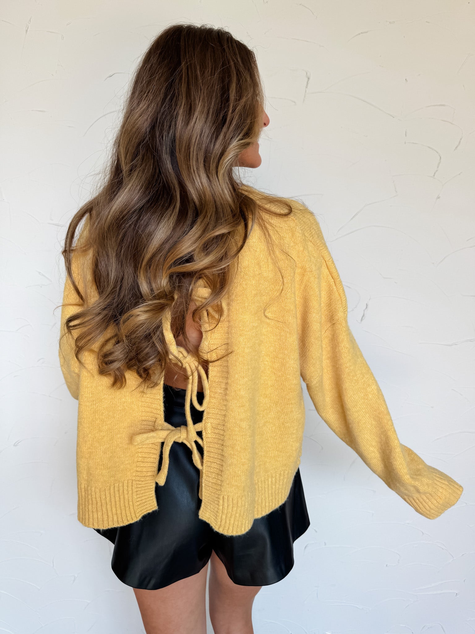 All Dolled Up Marigold Tie Back Sweater