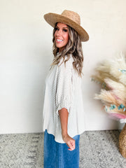 Best Thing In Life Rayon Striped Button Up Top- Taupe