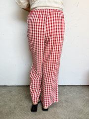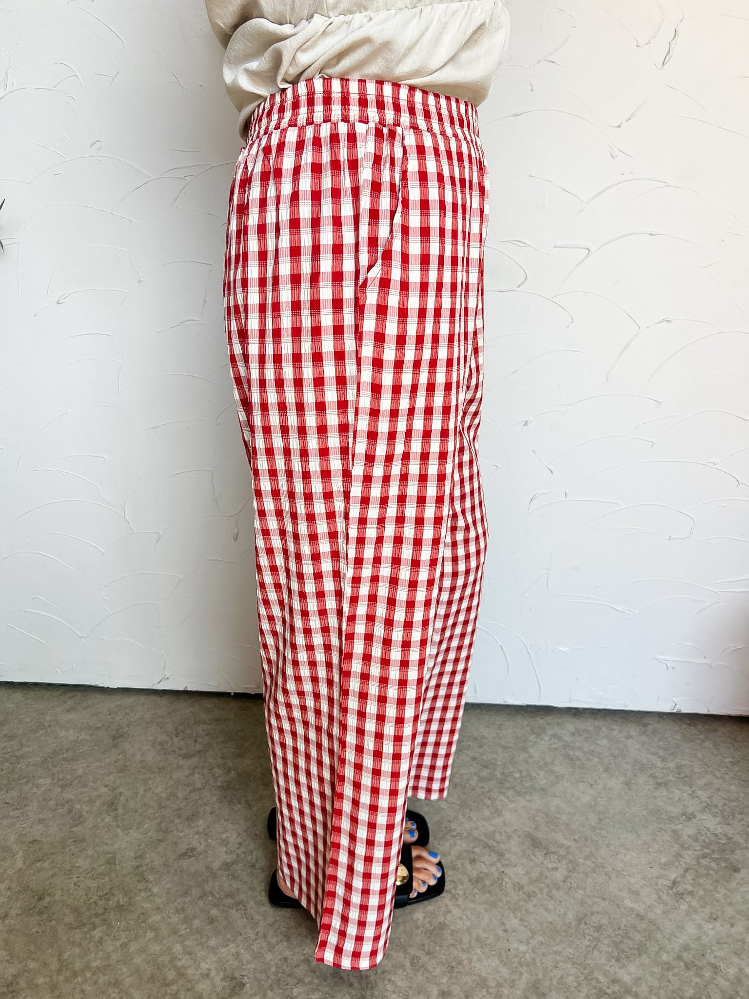 Let's Hit The Road Elastic Waist Checkered Casual Pants- Red