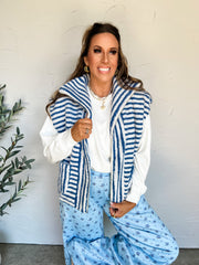 Out Of Sight Striped Sherpa Vest- Ivory/Blue