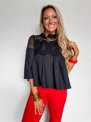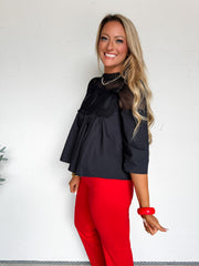 Styled With: Our Classic Essential Straight Leg Pants- Red & Usual Pointed Mules- Black